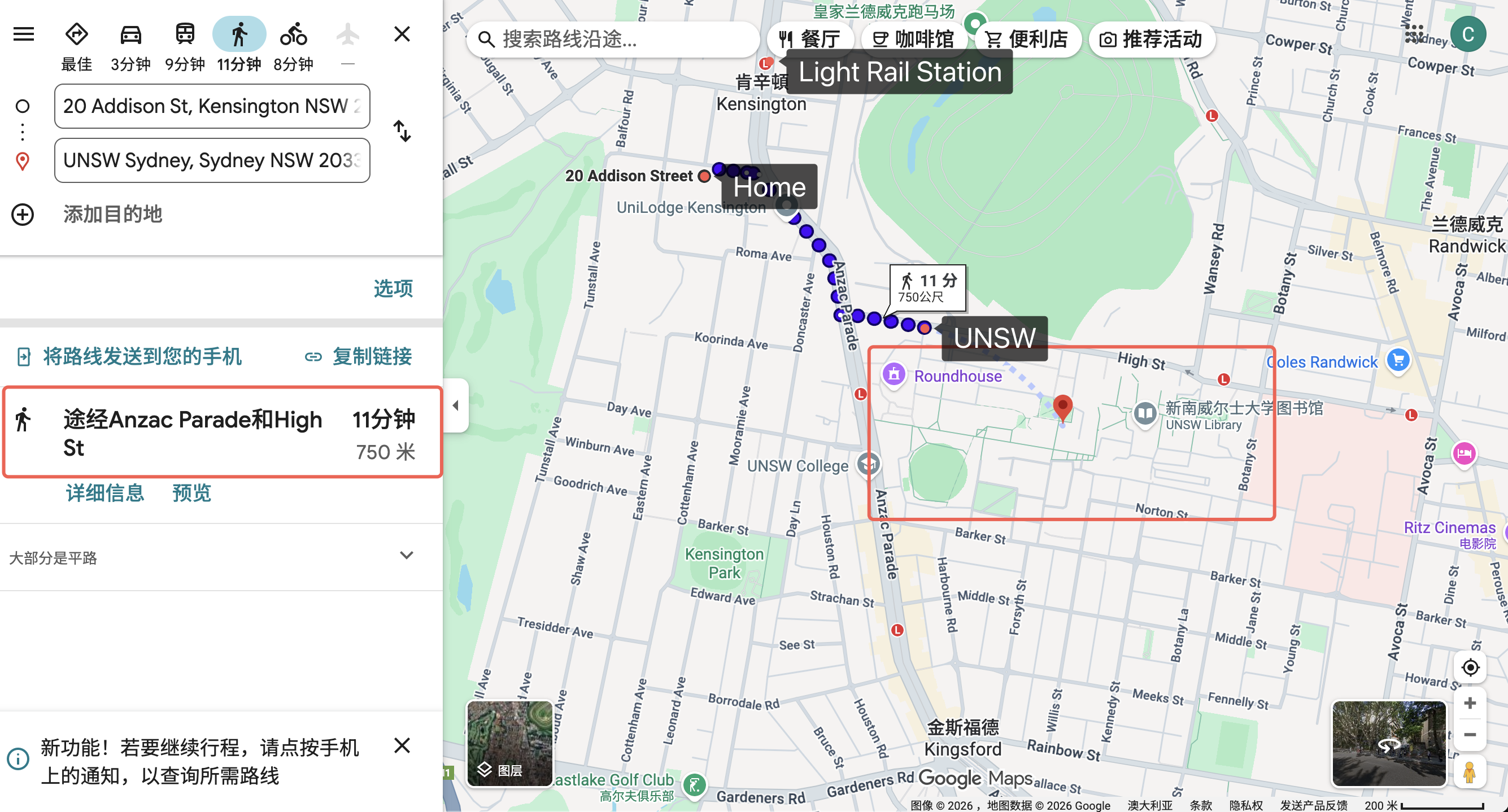 距离UNSW主校区步行 11 min,UNSW Global 预科/语言楼步行 13 min。
